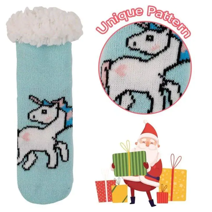 - The unicorn represents something beautiful and this cartoon image is very popular among children. We have a large unicorn design on the body of the socks, which is simple and cute, in blue-green, black and red – three colours to suit all dressing styles. As these are socks for children, the materials are safe and non-toxic, so please buy with confidence. The inside is skin-friendly and soft, while the outside is dirt-resistant and strong. These socks are available in three age groups, small, medium and large, so parents are sure to find a sock that fits their child’s foot size.