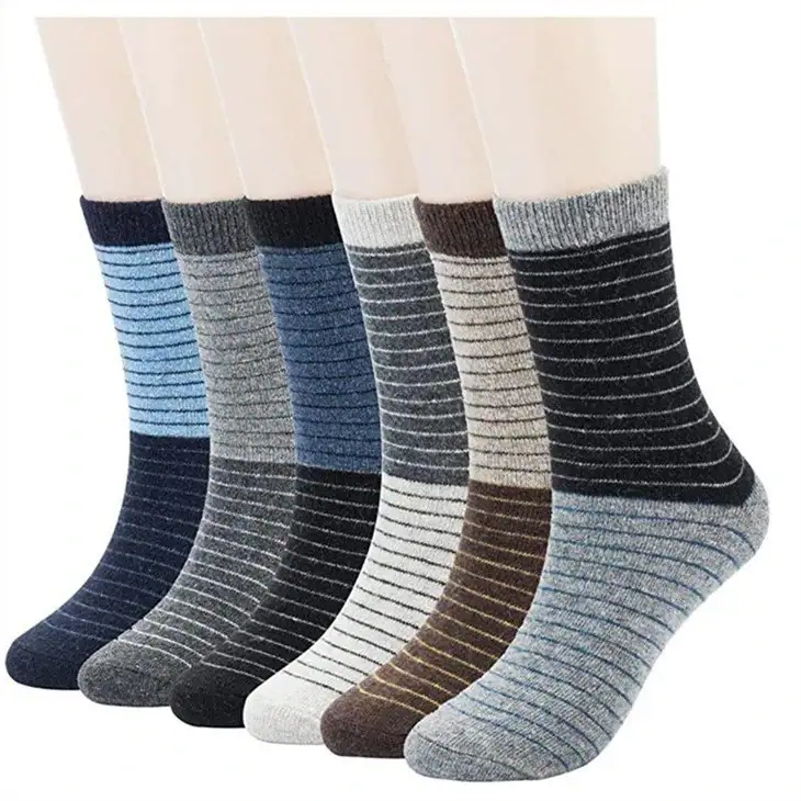 When choosing wool crew socks,outdoor hiking socks,the most important factor is the material. With the blend of wool, polyester and arylic fabric, these men wool crew socks retain heat so your feet so your feet stay warm, dry and cozy. In hot weather climates, our men crew socks wick away moisture and sweat, so your feet stay comfortable and dry!