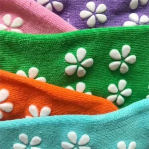 Best womens trampolin socks has 12 different colors, we choose the most popular colors in women’s idea. Because it’s kind of trampoline socks, so we designed special patterns by grips on the bottom, you can see they are small and cute flowers.