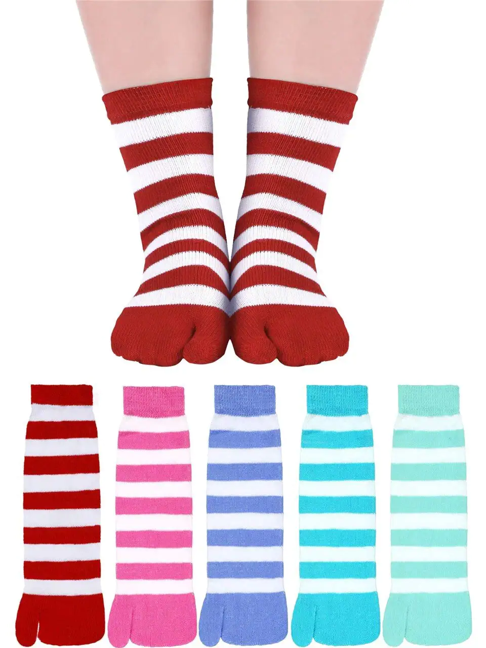 Separate-toe socks with cotton stretch fabric – eliminate friction/blisters, one-size-fits-all unisex design, breathable & fade-resistant striped patterns for all-day comfort.