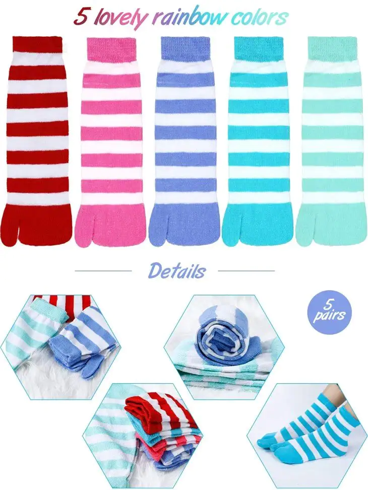 - These toe socks separate the bunions from the other toes and they help to reduce friction between toes and toes and between toes and shoes. Without friction, you can say goodbye to blisters. The socks are the right size and stretchy so they won’t be uncomfortable for your toes and feet, and one size fits most people, for both men and women. Cotton socks, soft and durable, not easy to fade, breathable, washable, comfortable to wear, not easy to break, can be used for a long time. The striped design is simple and elegant and suitable for all ages.