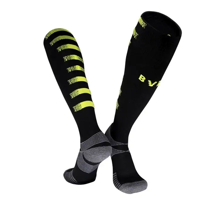 Our football sock have the great pressure and elasticity design , which can provide better ankle support and wider welt top seat belt comfort. High coverage can helo protects calf muscles and cheekbones from intense training, it’s a nice sock !