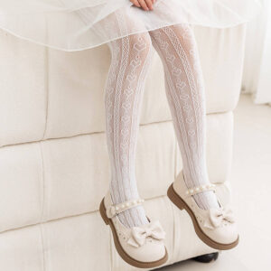 Heart Hollow-out Lightweight Girls’ Tights, Lolita Style with Custom Cut Length for Spring Summer Breathable Base Layer