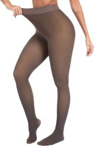 - No more shifting fleece or awkward bunching—these tights bond the warm lining seamlessly to the sheer outer layer. The high-waisted band smooths your tummy, while the 3D cut lifts your curves for that perfect bare-leg illusion, even in freezing weather.