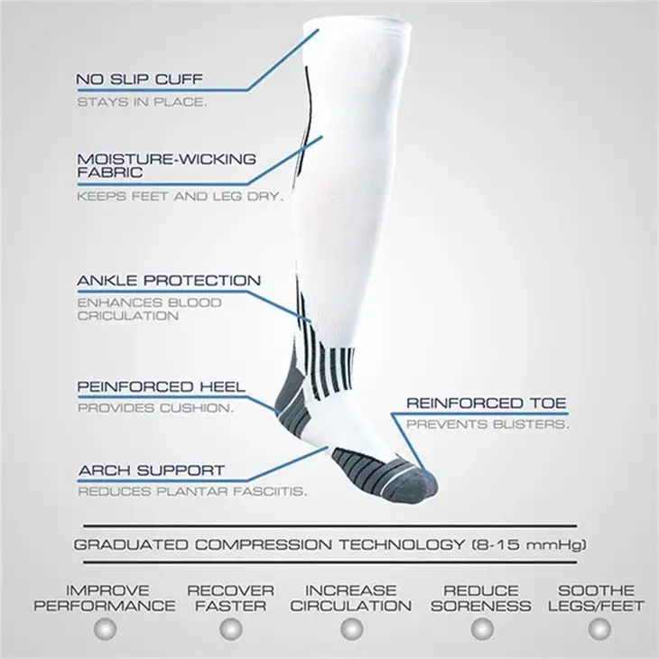 - 【True Graded Compression】Compression is greatest in the ankle area and less in the calf area, which helps promote blood flow. It prevents cramps and swelling, and also helps shorten muscle recovery time.