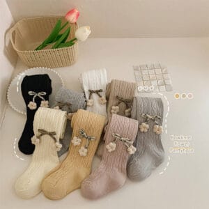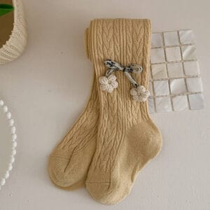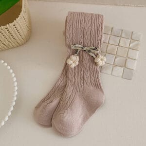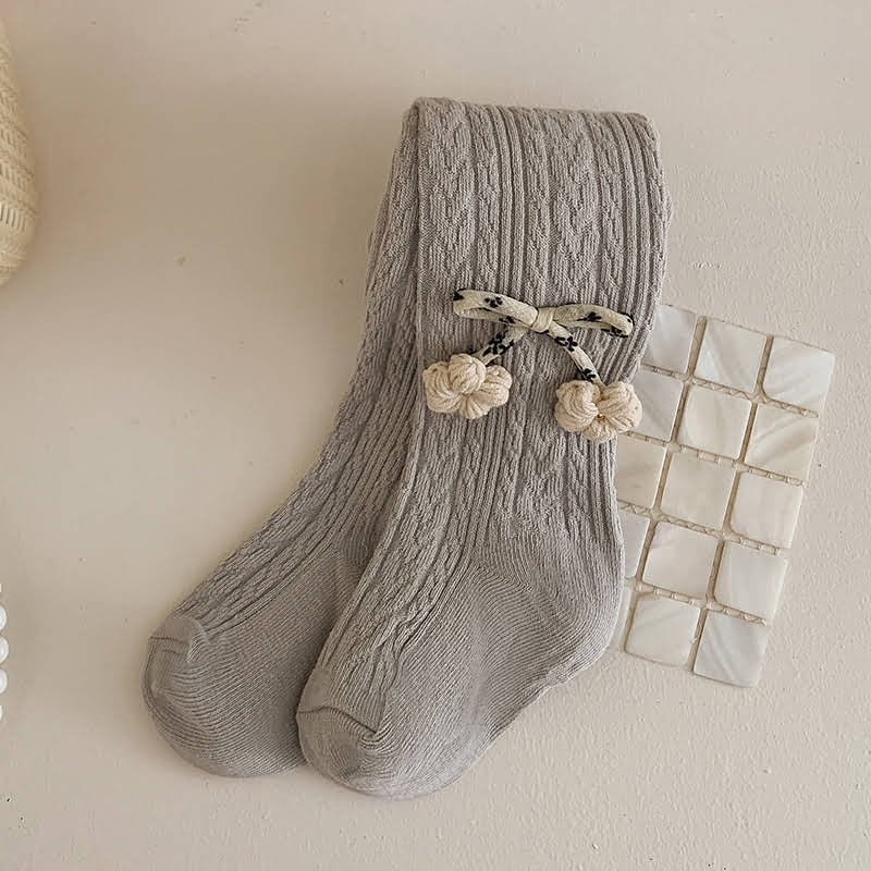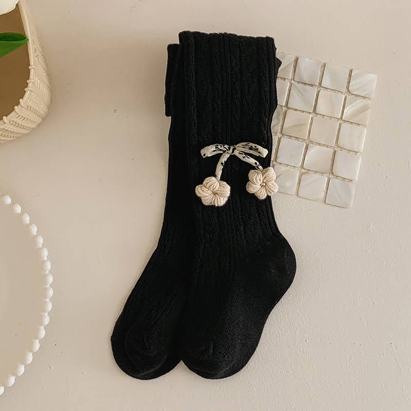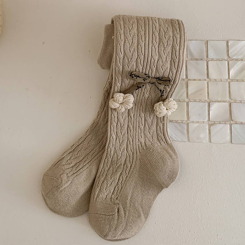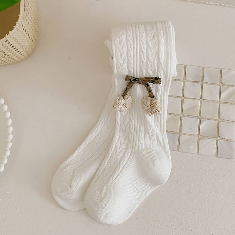 Girls’ Cable Pattern Tights with Cute Floral and Bow Details, Trendy Outerwear Base Pants for Toddlers and Kids, Versatile Durable for Daily Use