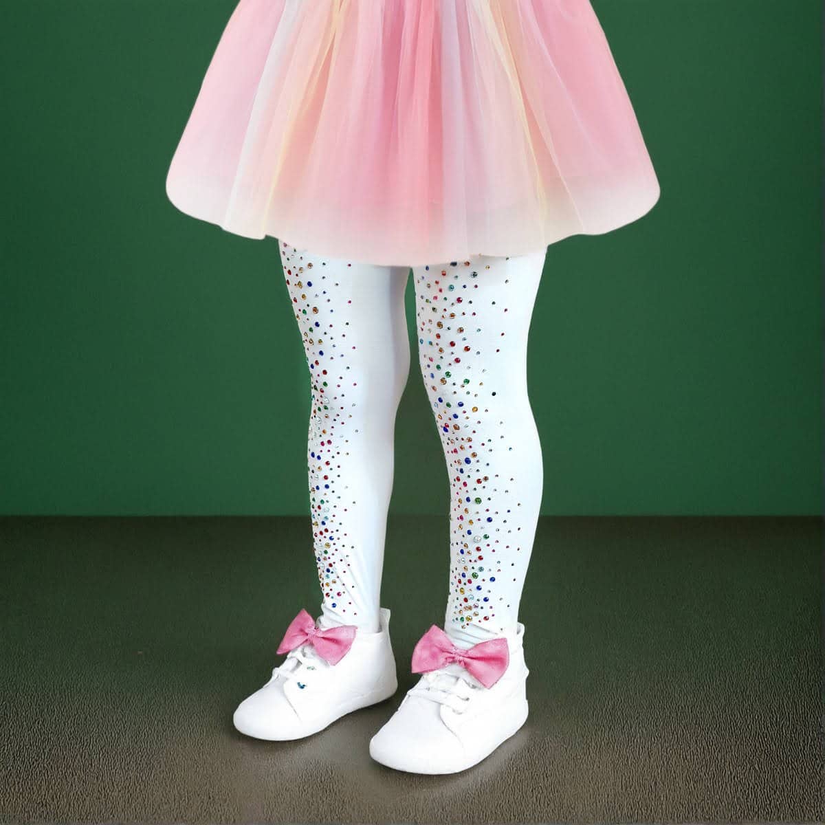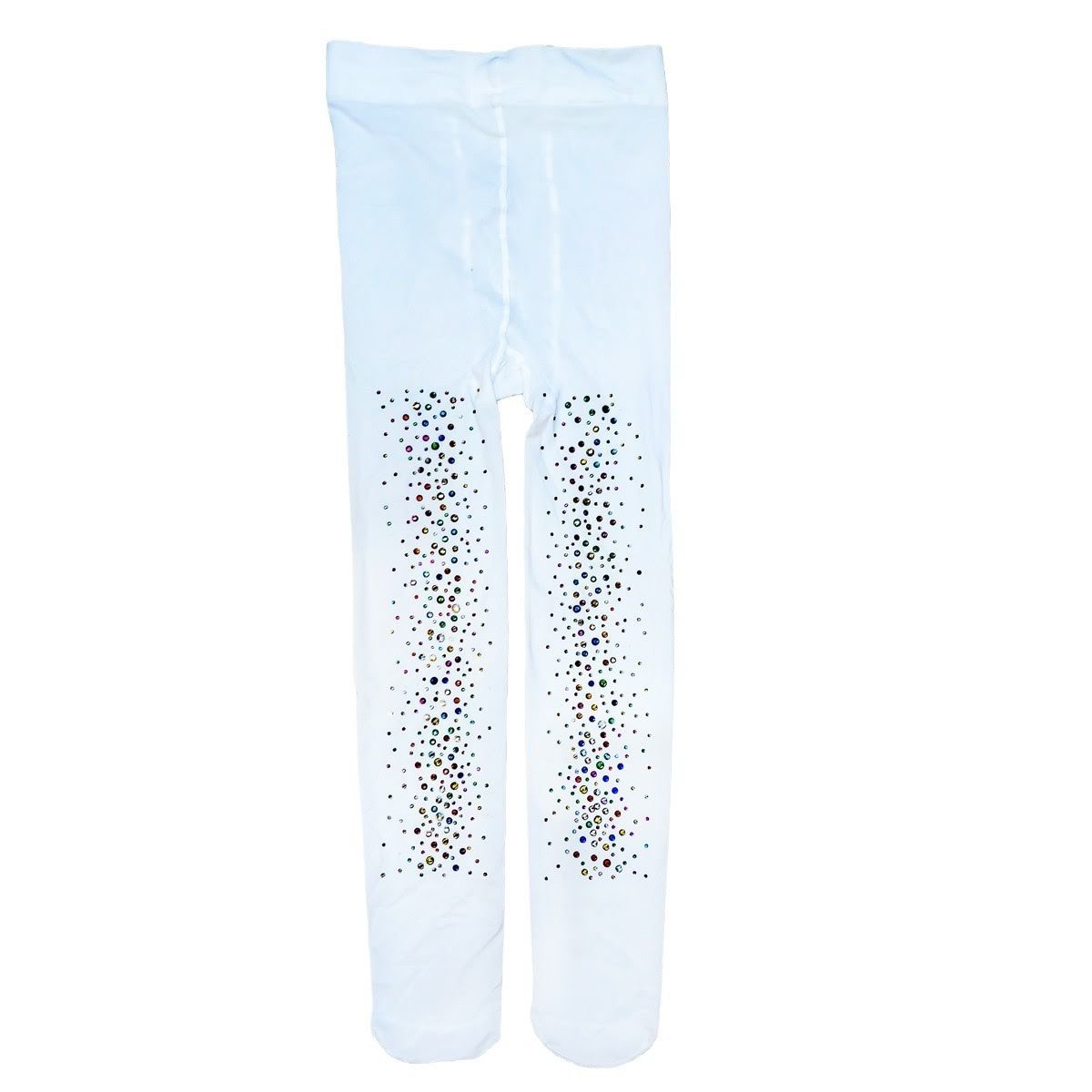 Girls’ Dance Tights, 120D Opaque Thickness, White Base with Rainbow Rhinestone Glitter Design, Wholesale Affordable Value