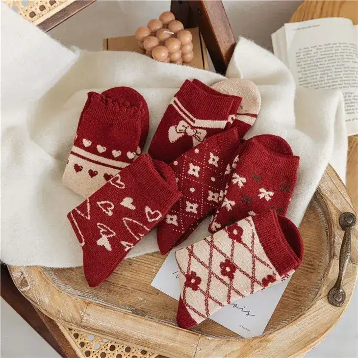 - New Year retro red fashion bow wool socks