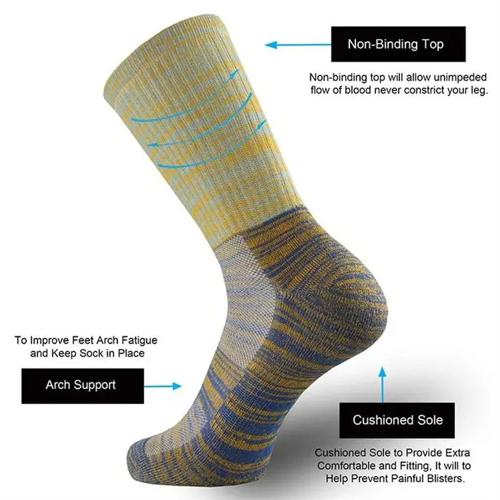 【Compression Mountaineering Socks】Containing a variety of fibers, the socks are very soft, with a seamless toe design that reduces friction on your feet.